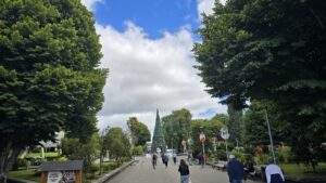 Oben kamen wir zum zentralen Platz, dem Plaza de Armas. Dort war ein riesiger Weihnachtsbaum aufgebaut worden.