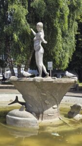 Die Straße wurde gesäumt von Skulpturen. Nicht nur Valhalla erinnerte uns an Skandinavien.