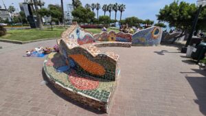 Zunächst fuhren wir mit dem Oceania Bus nach Miraflores. Von dort ging es mit einem Uber XL Taxi weiter zur Küste. Erste Station war die Friedensbrücke.
