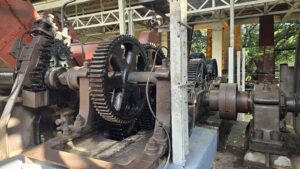 Dann durften wir die alte Fabrik besuchen, in der noch die alten von Dampfmaschinen betriebenen Pressen standen.