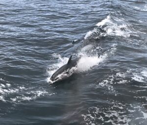 Auf dem Weg sahen wir Delphine direkt neben unserer Fähre schwimmen.