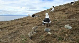 Auch die Möwen brüteten oder passten auf ihren jungen Nachwuchs auf.