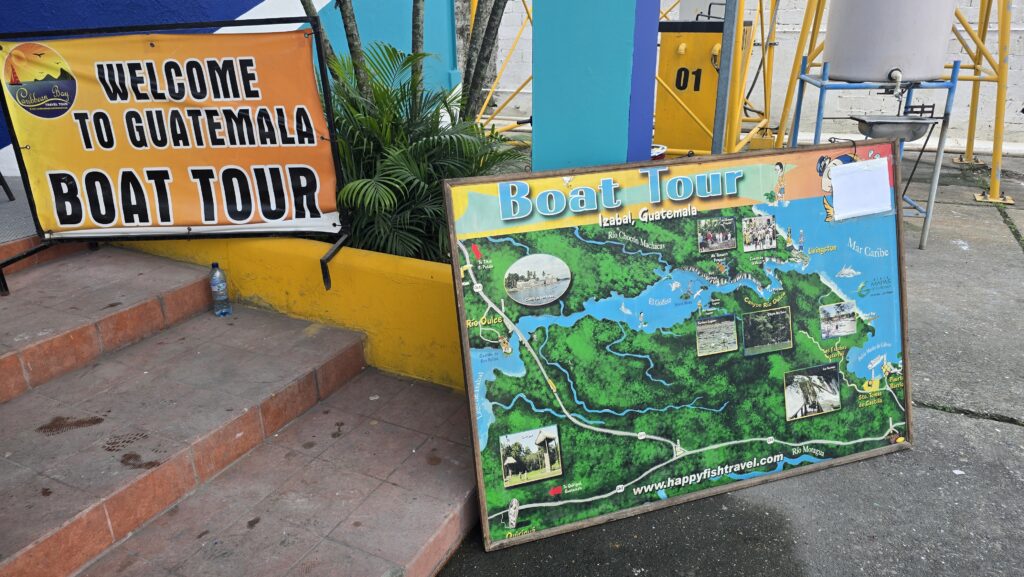 Als wir die Konditionen hörten, waren wir schnell überzeugt. Für 75 US Dollar sollte es mit dem Boot nach Livingston gehen und danach den Fluss hoch zu einer Vogelinsel und zu heißen Quellen. Dort am Rio Dulce befand sich ein Earthcache.