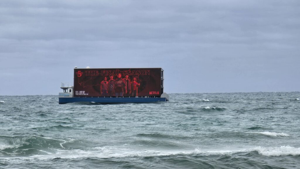 Das nahmen wir dankend an und genossen den Blick aufs Meer. Wir waren froh, dass die Sonne nicht den ganzen Tag grell schien, sonst hätten wir vermutlich einen Sonnenbrand bekommen. Wir wurden mit Werbung mit dem Schiff und dem Flugzeug überflutet.