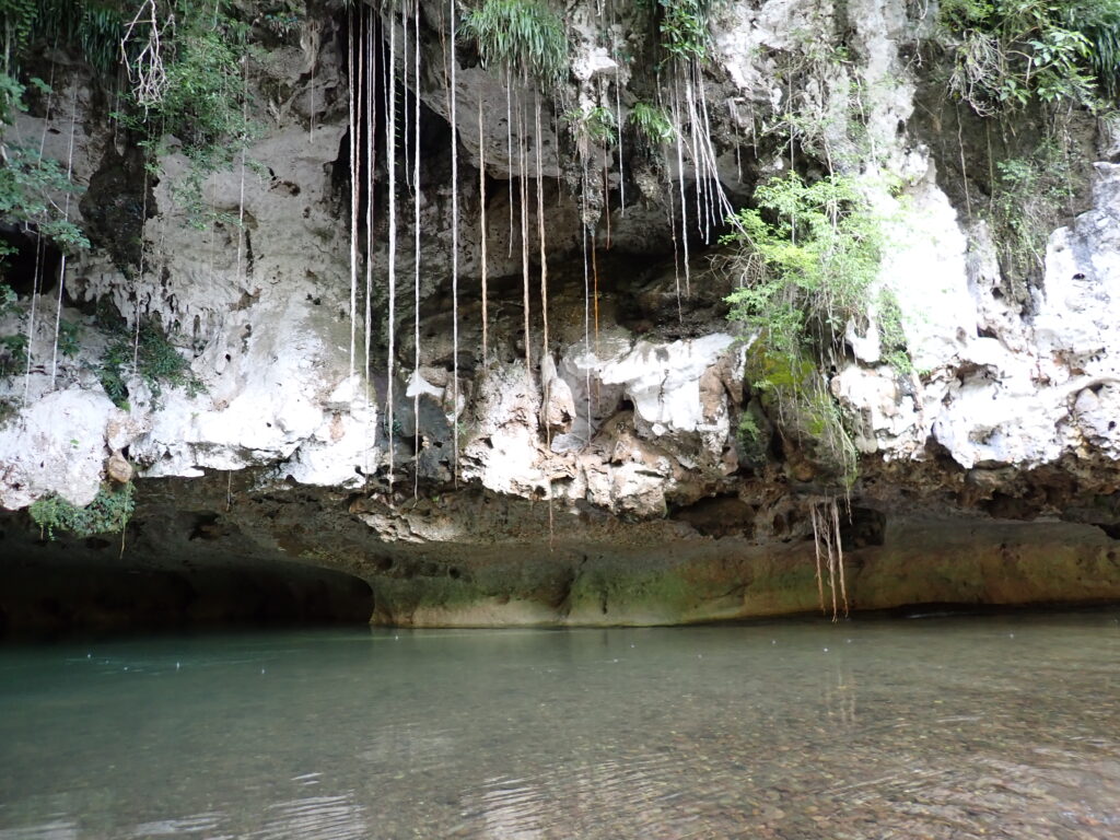Oben in Löchern hausten Fledermäuse. Wir sahen auch eine größere Fruitbat herumfliegen.