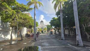 Erst als wir morgens am Pier mit dem Taxi ankamen, klärte man uns darüber auf, dass die Fähre abends wegen Jerry, einem Tropical Storm, nicht zurückfahren würde.