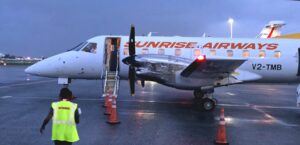 Wir erreichten St. Kitts mit dem Sunrise Flug 6812 mit deutlich Verspätung.