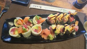 Immerhin lernten wir noch das aus unserer Sicht beste Restaurant kennen: Rituals Sushi, eine Mischung aus Libanesen und Sushi. Man konnte jedenfalls aus beiden Karten bestellen. Wir entschieden uns für Sushi und ich war wirklich begeistert von den Rolls ohne Reis (mit Gurke) und der Tigerroll.
