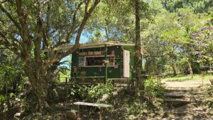Oberhalb lag eine kleine Hütte, an der wir frisches Wasser nachkauften.