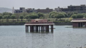Auf der Rückfahrt kamen wir für einen Fotostopp noch am Wasserpalast vorbei, dessen untere Stockwerke heute im Wasser verschwunden sind. Er wird nicht mehr genutzt, aber seine Gärten werden gepflegt.