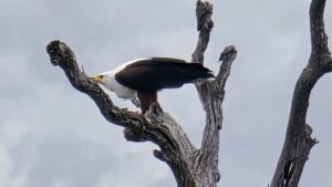 Wir sahen einen großen afrikanischen Fischadler auf der anderen Seite im Baum.