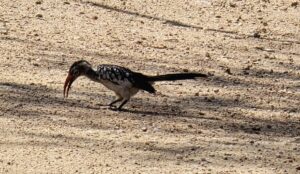 Ein kleiner Hornbill Vogel saß auf der Gravelroad.