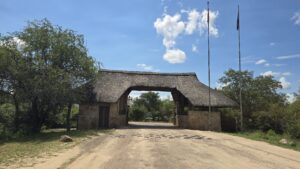 Nach Zwischenhalts in 2 Camps zum Auftanken und Toilettengang kamen wir nach weniger als 6 Stunden Fahrt am Orpen Gate an. Das letzte Mal wurde unser Auto durchsucht – wobei dies nicht viel mehr als ein Routineblick war.