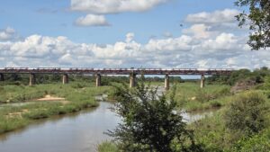 Es liegt am Sabie River. Dort gibt es eine alte Eisenbahnbrücke. Der Zug, der darauf steht, ist heute ein Hotel. Die Zimmer kosteten knapp 1.000 Eur die Nacht und kamen deshalb für uns nicht in Frage.