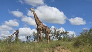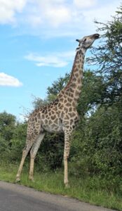 Dieses Mal nahmen wir die S26 Richtung Skukuza Camp. Aber vormittags zeigten sich wieder kaum Tiere. Am Start ein paar Wildebiester, ein paar Elefanten, Antilopen. Da blieben bei einer Giraffe noch die meisten Autos stehen.