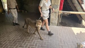 Für zusammen ca. 45 Eur erhielten wir beide nicht nur Zutritt, sondern durften auch noch eine Spezialaktivität aussuchen. Das Tauchen mit Krokodilen war gerade wegen einer Sicherheitsprüfung nicht möglich, so suchten wir uns das Erlebnis mit Geparden aus.