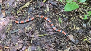 Dafür erblickten wir hier eine Korallenotter, eine Giftschlange, am Boden.