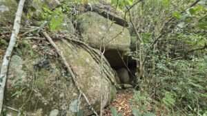 Dahinter führte der Pfad geradeaus nur zu einem Felsen. Rechts davor ging ein kleiner Pfad hoch. Diesem folgten wir und kamen über den Felsblöcken heraus.