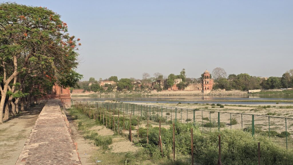 Der Yamuna fließt direkt am Mausoleum vorbei.