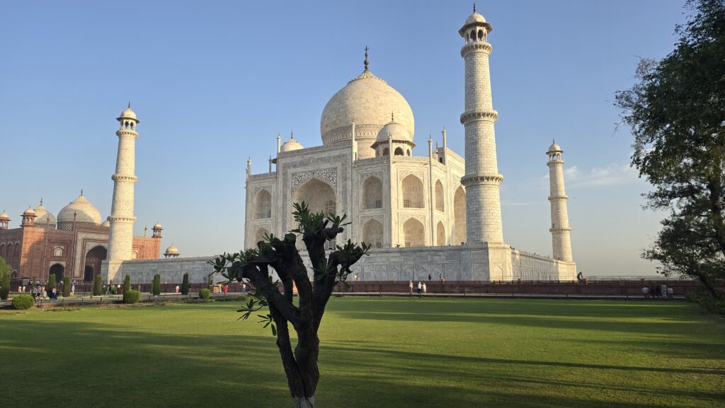 Von hier konnten wir den ersten Blick auf das Taj Mahal in der Ferne werfen.