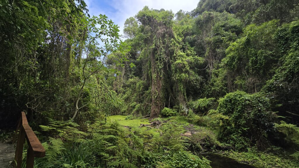 Das Highlight des Blue Duiker Trails fanden wir war diese verwunschene Landschaft mit angestautem Wasser.