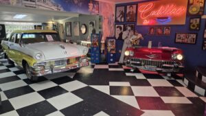 Im Ort lösten wir mehrere Adventure Lab Cache Stationen. Dabei wurden wir auf das Marilyn’s 60’s Diner mit seinen extravaganten Ausstellungsstücken aus den 60er Jahren aufmerksam.